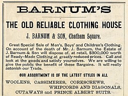 It seems that the Barnums, owners of a large clothing store in Chatham Square advertised in the timetable had a personal interest in the Harlem Division. Both Stephen and Joshua Barnum were born in Brewster (or as it was referred to at that time, Brewster’s) and were certainly riders of the Harlem.