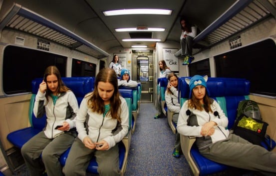 I’ve always wanted to do this on a train for quite a while, but timing was always difficult. Every time I’ve done a photo like this in the past, I would put my camera on 10 second delay, hit the shutter and run to the spot I needed to be in… relatively time consuming. However, I recently bought a wireless remote for my camera, and realized it would make my scheme a whole lot easier.