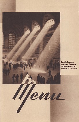 Last weekend when I was out and about, I couldn’t resist making the purchase of an old New York Central dining car menu. I don’t particularly need a dining car menu (just as a cat lady doesn’t really need 50 cats :P), but here I am with a new acquisition to my ever-growing collection. I think the thing that really captured my interest was the fact that the menu had a photo of Grand Central on the front. But I’m glad that I bought the thing – if only to marvel at the cheap (by today’s standards) prices food used to cost “back in the day.”