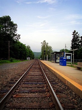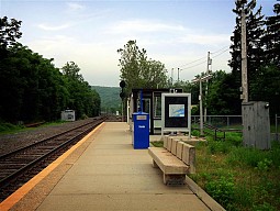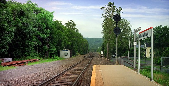 As we head further along the Port Jervis Line, the next station we come to after Suffern is Sloatsburg. The station is about 35 miles from Hoboken, and is relatively bare-bones. We could certainly compare it to some other stations on the east of the Hudson, like Ansonia, but it does have one difference – you will find a ticket vending machine here. The low-level platform and the very small shelter are actually quite similar, however. Although there had been talk about upgrading the infrastructure at the station years ago, including making it handicap-accessible, not much has been done. It is one of the least-used stations on the line (only Otisville gets fewer riders), which likely plays a part in that decision.