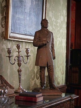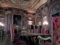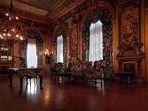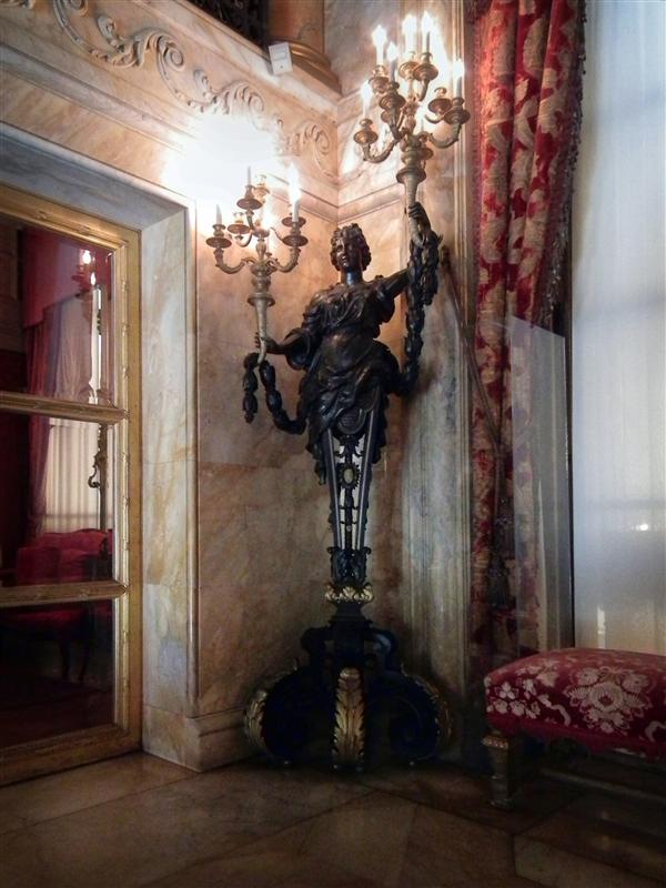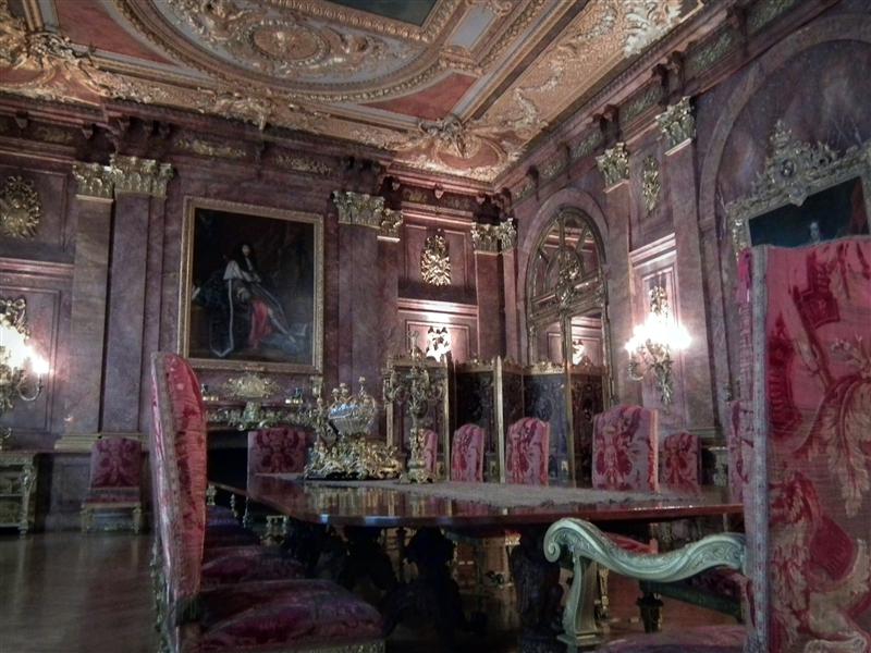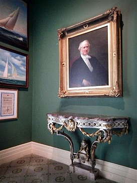 Today, Marble House is maintained by the Preservation Society of Newport County, who has owned the mansion since 1963. Regular people can tour the mansion, however, for the truly wealthy, you can rent the place out for an event. The weekend I was visiting, this was the case. One of the employees there even said to me that some of the guests arriving for the festivities, “had more money than God.” I suppose it turned out well in the end – while everyone was distracted with the wealthy visitors, I was able to surreptitiously take a few photographs of the inside of the mansion. Many furnishings in the house are original that were donated to the Preservation Society, though the visage of the Commodore is visible throughout the house. Assumedly, these are not original, as I can not imagine Alva keeping these in her meticulously designed abode.