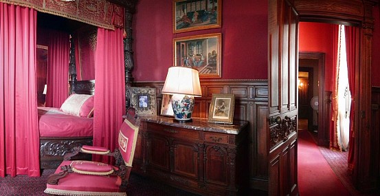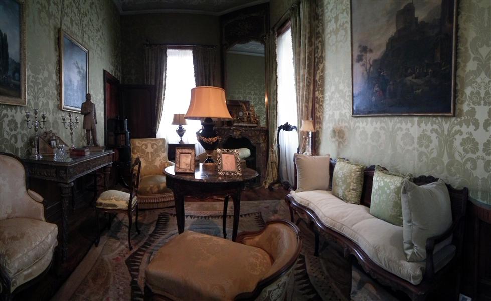 In addition to the main house, the mansion has a small Chinese tea house in the back yard, right next to the water. Several years newer than the main house – the tea house was commissioned in 1912, and opened in July of 1914. The small tea house is 1125 square feet with 14 foot high ceilings, and played host to various meetings of Alva’s pet cause – womens’ suffrage. There is something slightly amusing about a woman who fought for womens’ rights, yet forced her daughter into an arranged marriage for a noble title, but Consuelo did not seem to hold this against her mother.