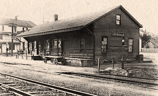 Old Erie station at Otisville, photograph by James E. Bailey, dated 1909. This station was located closer to downtown Otisville, the current Otisville station is in a different location.