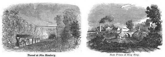 1851 woodcuts of spots along the Hudson River Railroad – New Hamburg, Ossining, and Peekskill