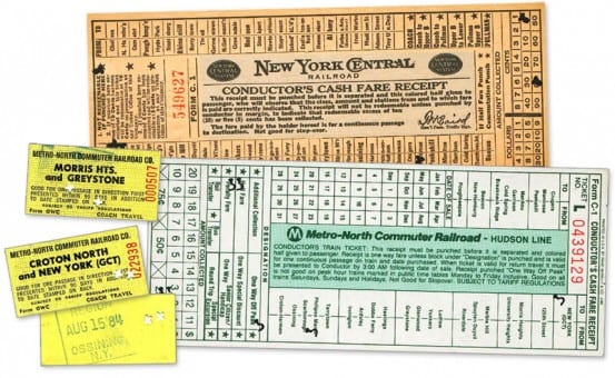 Cash fare receipts and tickets from the Hudson Line. From the collection of Otto Vondrak.