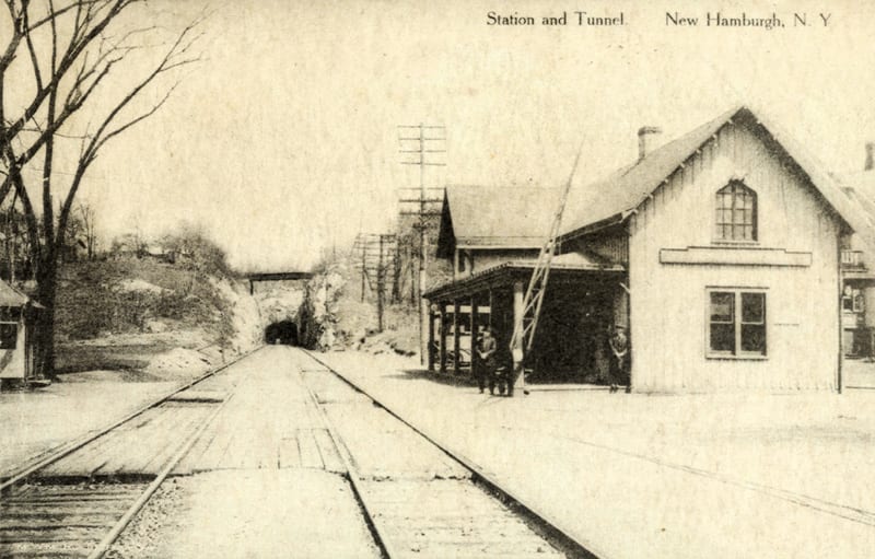 Along the railroad, however, New Hamburg was likely notable for its tunnel. As I mentioned in my introduction to the Hudson Line, eight tunnels needed to be constructed to accommodate the tracks in the 1840’s, one of which was in New Hamburg. Although the tunnel is no longer used by the railroad, it still exists, though for the most part it is covered by brush. Railroad service both north and south had already been established before the tunnel was completed, so for a short time passengers heading through New Hamburg had to detour the unfinished tunnel by boat.