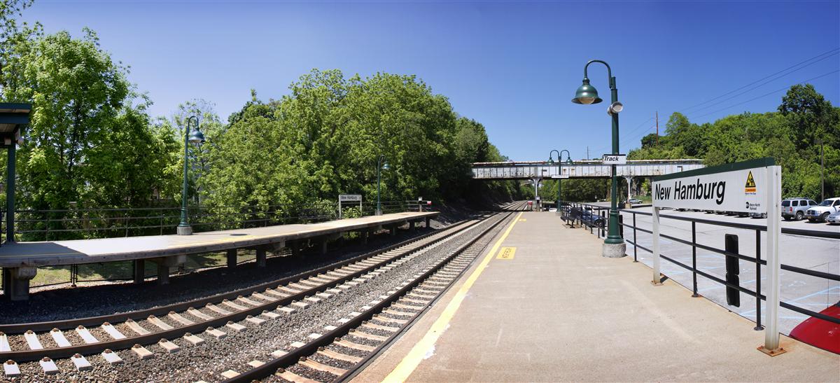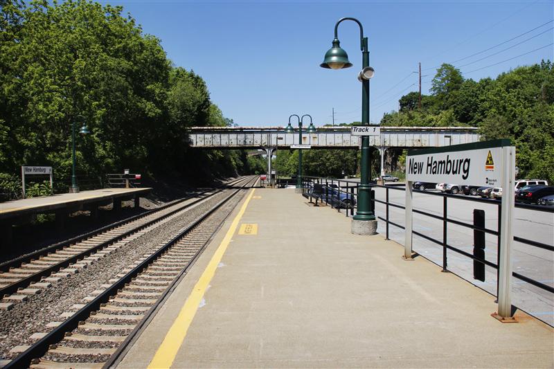 Today our Tuesday Tour takes us to the northern portion of Metro-North’s Hudson Line, as we visit New Hamburg. The station is about 65 miles from Grand Central in the un-electrified territory north of Croton-Harmon, and sandwiched in between Beacon station and Metro-North’s terminus at Poughkeepsie. The railroad bisects the hamlet of New Hamburg, notable mostly for its marina on the Hudson.