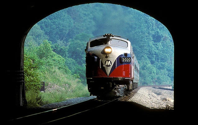 Landmark numero uno – Passing through the Breakneck Tunnel, just south of Breakneck Ridge station. 1993 photograph by Jim Kleeman on Flickr.