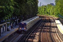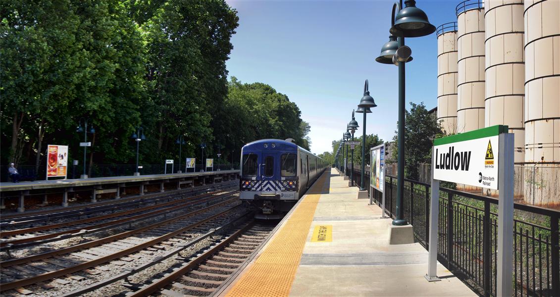 Today’s tour of the Hudson Line takes us to another of Yonkers’ railroad stations. Our visit to Ludlow will be relatively short, as there isn’t too much to mention here. The station is located just less than 14 miles from Grand Central, and is the southernmost Hudson Line station in Westchester county. Riverdale station is just south of here, and the main Yonkers station is north. Like many places along the line, the station consists of two outside platforms with four tracks running through the center. While most stations also have a platform overpass, here the elevated Ludlow Street serves as a method to access the other platform. Ticket machines are also located on this road.