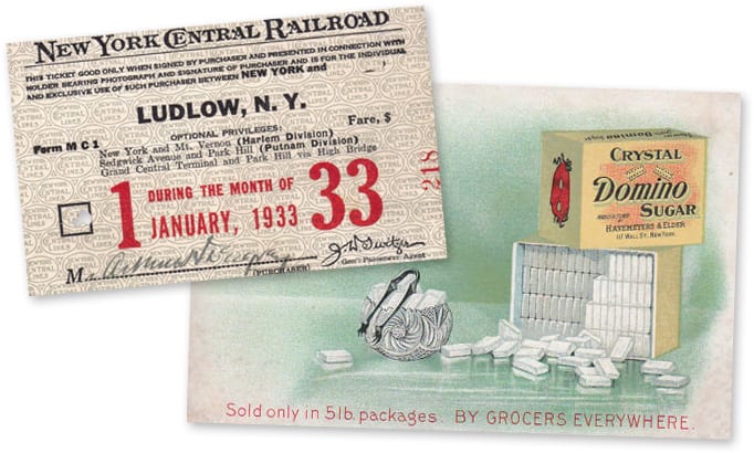 Monthly pass from Ludlow, and a Domino Sugar postcard. Yonkers, just north of Ludlow station, has been the home to a sugar refinery for over 100 years.