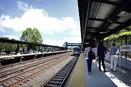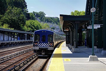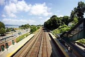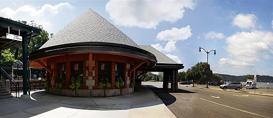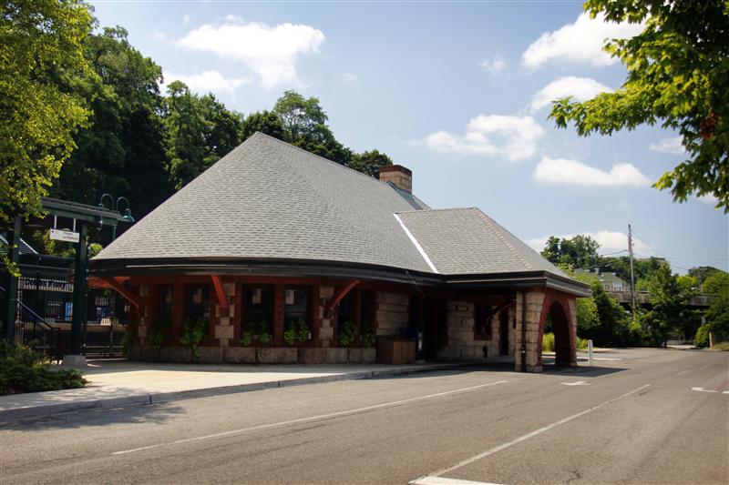 Welcome to Dobbs Ferry, one of the lovely Hudson Line stations with a great view of the mighty Hudson River. On the fourth of July, I spent the day exploring the Hudson Line, but ended up spending most of my time here. The waterfront view is quite lovely, and adjacent to the station is the aptly named Waterfront Park – reason enough for you to come and visit this place. Though the station used by Metro-North particularly noteworthy (besides the nice Arts for Transit piece), the old station building still stands and is a lovely piece of railroad architecture. Though I didn’t get to see the inside, the station has two floors, the first of which has a waiting room, ticket window, bathrooms and a boiler room. It was designed by architects Shepley, Rutan and Coolidge in 1889. Last year the town was looking for proposals for businesses interested in leasing the station, but apparently all of those proposals were later rejected.