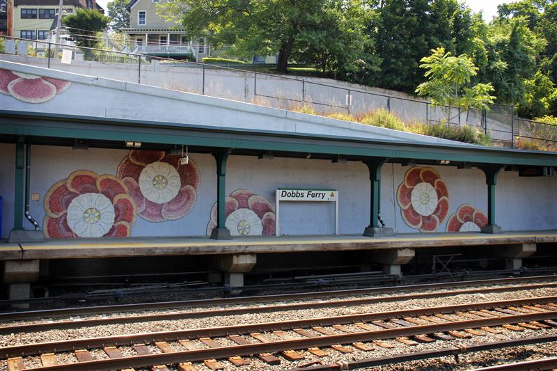 The current station at Dobbs Ferry, operated by Metro-North, is about 20 miles from Grand Central Terminal. The average train time to Grand Central Terminal is around 45 minutes. As previously mentioned, the station isn’t particularly noteworthy, but it did have a bit of a makeover in the mid-2000’s. The work at the station, part of the Hudson Line Stations Improvement Project, was completed in 2008. It included updates to the platform, overpass, and a new platform canopy. An elevator was also installed in the updated overpass, making the station ADA compliant. While this was all going on, some attractive art was also added to the station platform, as part of the Arts for Transit program.