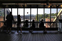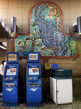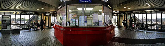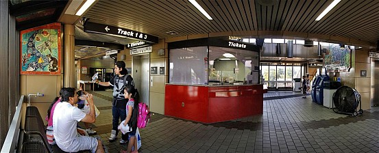 Denoting its busy status, Croton-Harmon has three island platforms, allowing multiple trains to stop at the station simultaneously. Above the platforms is an enclosed waiting room for passengers. Croton-Harmon is one of the few system stations to still have a manned ticket window, which serves Metro-North customers only. Amtrak does have two ticket machines not far from the ticket window. The waiting area also has a few vending machines, and restrooms available. Closer to the parking lot, the station also has a cleaners – this building was the temporary station in 1988 as the current station was under construction.