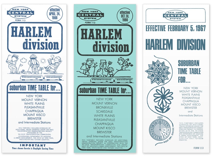 Today you won’t find form numbers on any of Metro-North’s timetables. Their inclusion in the early timetables almost seems like an in-joke amongst the old railroaders working for this new company. You won’t see “Upper Harlem” timetables either – the entire line is usually printed in a single timetable, making this particular timetable rare.