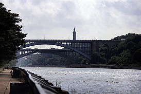 Compared to other Hudson Line stations we’ve visited, Morris Heights station is relatively uninteresting. However, the state park that is located next to the station is pretty nice, and worth a visit if you ever happen to find yourself at Morris Heights. The park offers nice views of the Harlem River, and the Washington Bridge that crosses it.