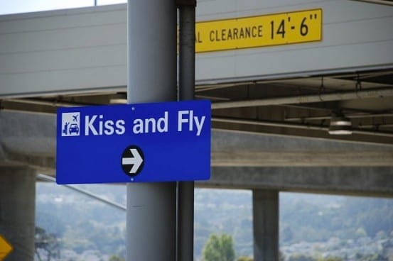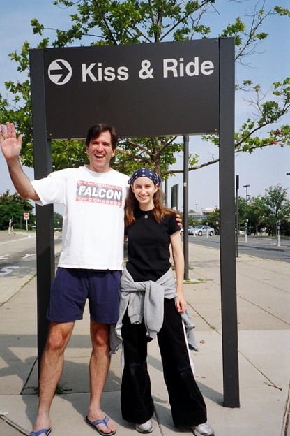 Left: Me about 10 years ago with my friend’s uncle in front of a DC Metro Kiss and Ride sign. Right: A Kiss and Fly sign at San Francisco International Airport. Photo from JPG Magazine.