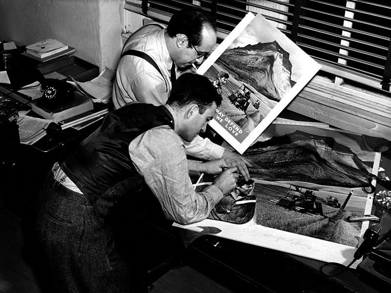I dunno about inspiration… Railroads seemed to enjoy boasting about helping out in the war, so this seems almost like a feather in their cap. The Colorama was almost like desperation for any ad money they could scrounge up.