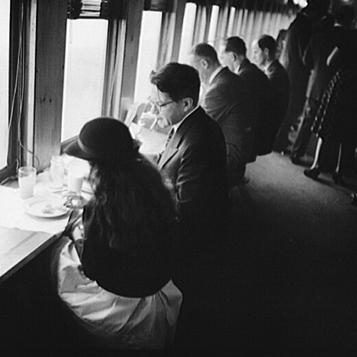 Now when I said that the Farm Security Administration photographers endeavored to capture views of American life, I totally meant it. Undoubtedly, the photographers could have spent the entire day wandering around Grand Central, capturing the various people walking in and out of the Terminal and call it a day. But the FSA, they didn’t work that way. Collier went beyond Grand Central and followed some commuters home – snapping photos of them in the bar car, playing cards on the train, or just reading the newspaper. For one particular commuter, an unidentified advertising executive from Westport, Collier captured the man’s breakfast with family, photographed him running out the door to make the 7:40 train, and even snapped the moment he kissed his wife goodbye at the station. The following photos are truly a gem – illustrating not just an American life, but the life of a commuter to Grand Central in the early 1940’s.