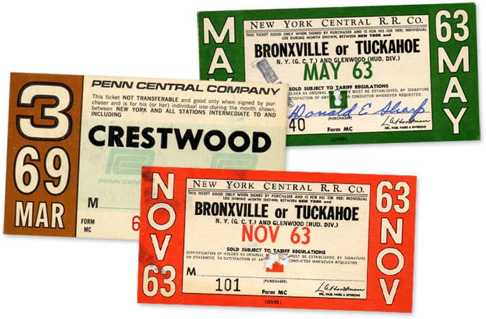 This ticket booklet, stamped with the New York Central logo contained a photo of the rider, so no one else could use it. The monthly ticket could slip inside the pouch and was visible to the conductor.