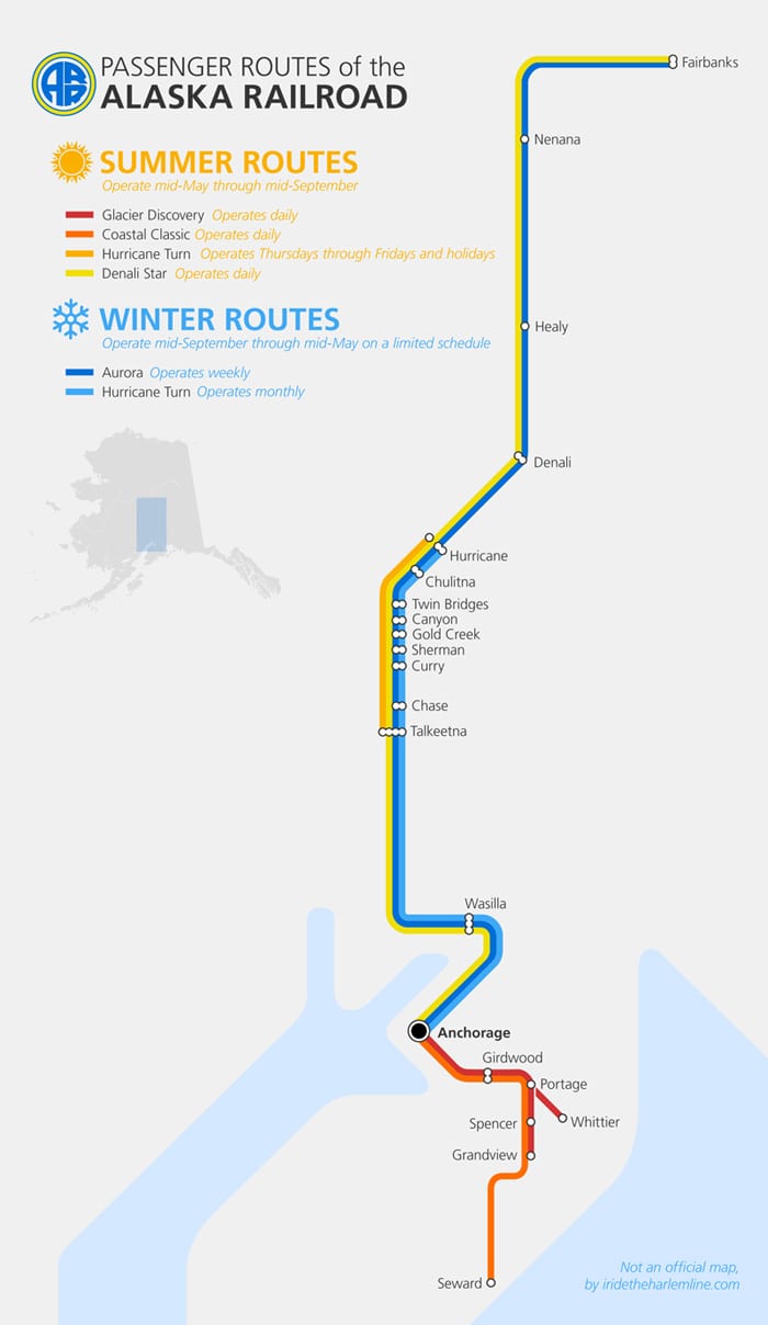 But it is, of course, the passenger routes of the Alaska Railroad that we’re really here to see, and they look a bit like this: