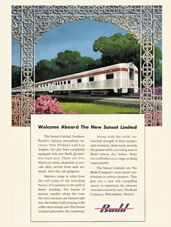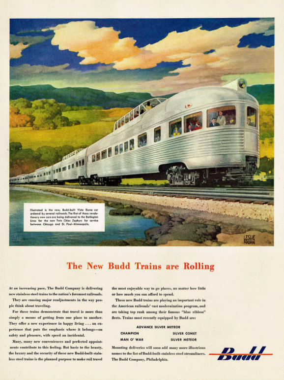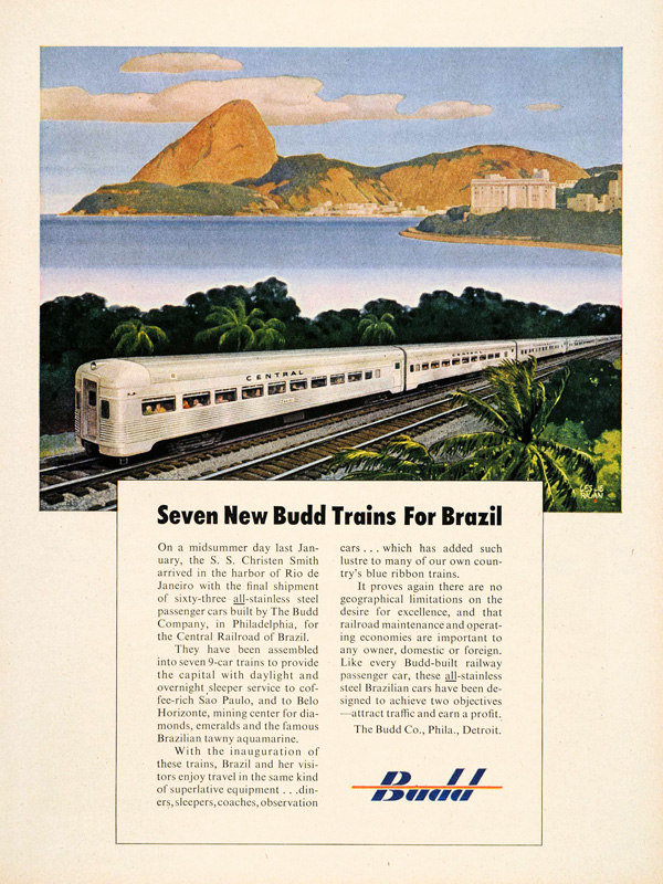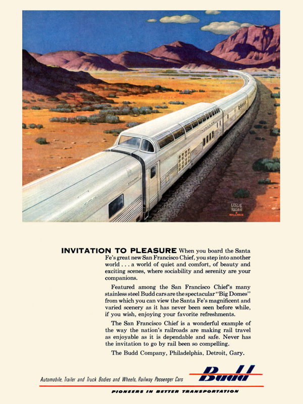 Budd did not only make trains – this advertisement was for car bodies, but I absolutely adore the artwork of the Golden Gate Bridge.