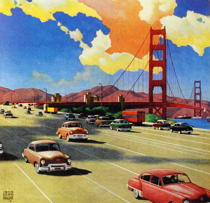 This beautiful painting by Leslie Ragan, which seems to set the mood for a long-awaited Spring, appeared in an advertisement for the Budd Company.
