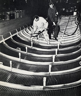 Left: Construction on the inside roof of an RDC. Right: An RDC in action.