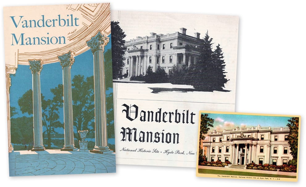 Brochures and postcards from the Hyde Park Vanderbilt mansion. Although considered modest by the standards of the “Gilded Age,” a mansion is still a mansion, and far more than a regular person could afford.