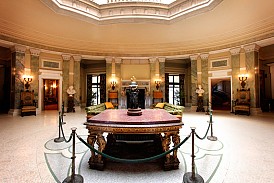 The acorn and oak leaf, the adopted crest of the Vanderbilt family, were frequently found in the mansions and other buildings that the family commissioned. Unlike some of the other mansions, the motif is far less prominent here. The few acorns you’ll find at Hyde Park are mostly on the second floor – incorporated into the banisters and other minor detail work.