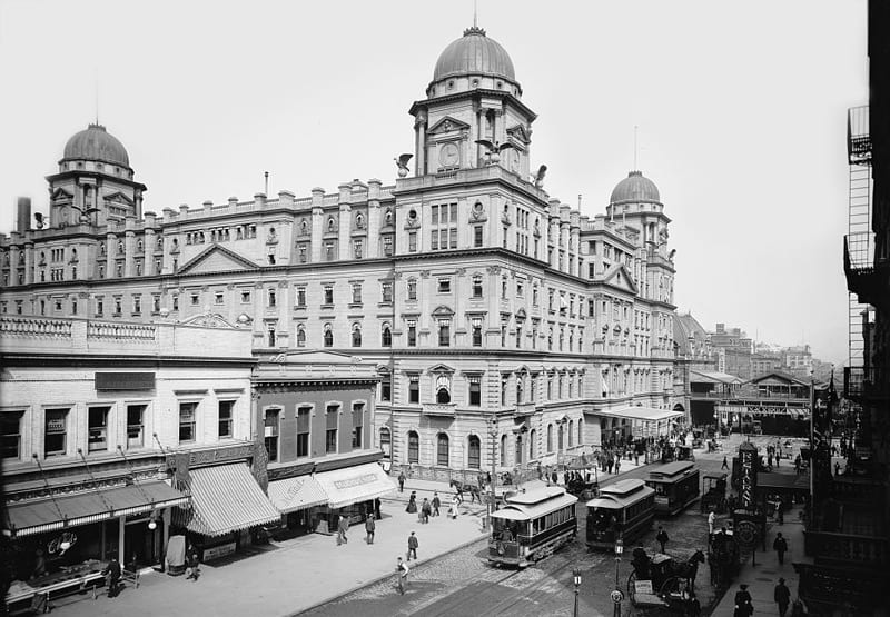 An early horsecar on the New York and Harlem Railroad in New York City. As a random aside, it was these railroad horses, often worked extremely hard, that were a significant reason for the founding of the ASPCA in 1866. The ASPCA actually operated the first “horse ambulance” and made sure these rail workhorses had fresh drinking water daily.