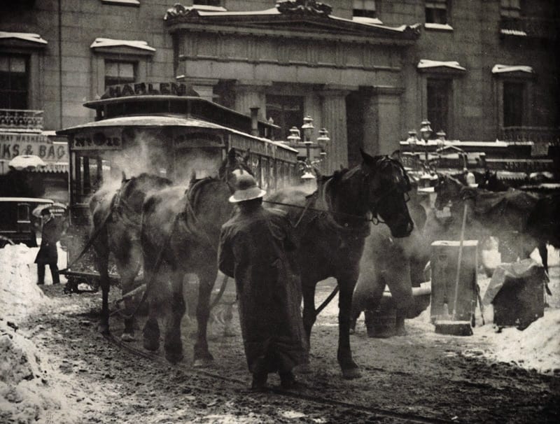 Arguably one of the most famous photos of a horsecar in New York City, by famed photographer Alfred Stieglitz.