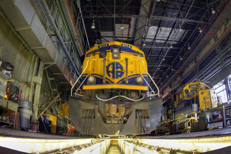 Over the past few weeks we’ve gotten a chance to check out the best that the Alaska Railroad has to offer – from its most attractive scenery to some of its rarer routes, we’ve covered a lot of ground. Part of the awesomeness of the NRHS convention was that we got to see some “behind the scenes” stuff that most rail passengers never get to see. The Alaska Railroad was undoubtedly a generous host, opening not just their rail system to us, but their operations center and even their locomotive shops.
