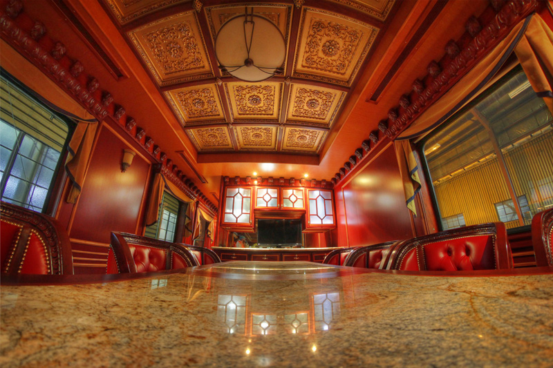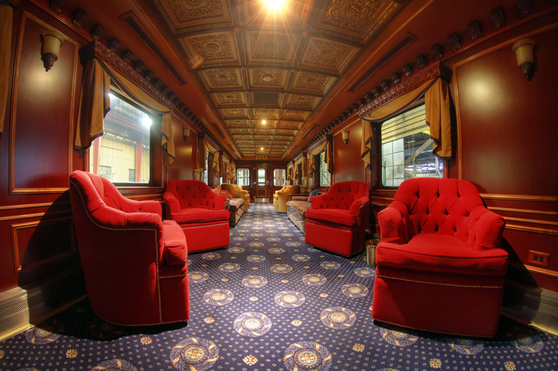 The Alaska Railroad’s finest railcar, the Denali, is luxury on the rails. Built in 1929 and refurbished by the Alaska Railroad, the car features only the fanciest materials – bronze, crystal, mahogany, and marble. The railcar contains a sitting area, a “boardroom”, a kitchen, as well as a bedroom and bathroom (which is probably nicer than the one in your own home).