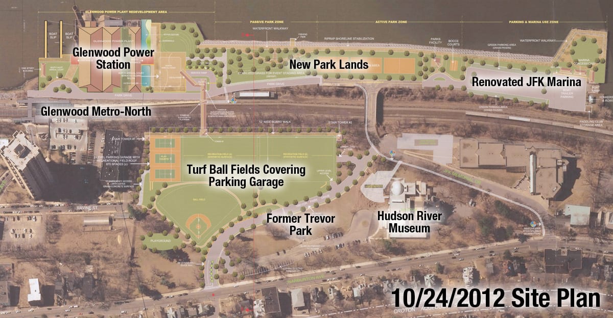 While there will always be people opposed to development in their neighborhood, the plans for restoring and repurposing the old power station were generally well received. Unfortunately, the area surrounding the site contains no space for parking, and project planners had their eyes on portions of nearby Trevor Park to fit that need, which was not well received by locals. Original plans called for a partially underground parking structure under the current Trevor Park, with artificial turf ball fields to be constructed above. After comments from the public, alternate possibilities have been suggested.