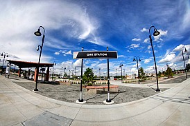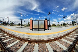 All of today’s photos are from the new W Line, including some photos of two Art-n-Transit pieces. Over 900 application were received from artists looking to create something for the new rail line. Artworks were commissioned for each of the new stations, though a few have yet to be installed. Found at the Lakewood-Wadsworth Station is a glass sculpture titled “Rain and Sun” by artist John Rogers. Colored pieces of glass are suspended on wires, which reflect sunlight onto the platform in an array of colors.