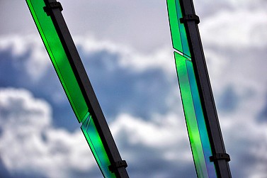Installed kinetic glass sculpture by John Rogers found at Lakewood-Wadsworth Station.