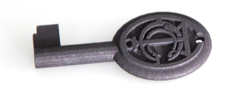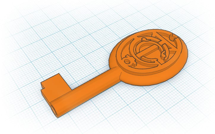The key was modeled in 3D using Tinkercad, and then 3D printed using Shapeways.