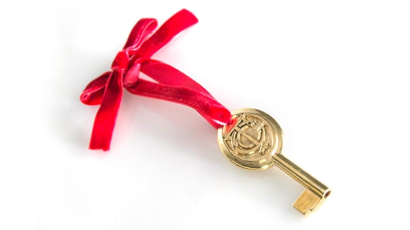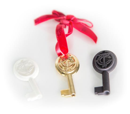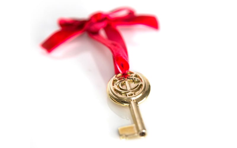 As festivities kicked off celebrating the opening of the new Terminal, meals were served, music was played, and Mr. Bronson was presented with the keys to the Terminal in a ceremony next to the information booth. While we’ll probably never know exactly what those keys looked like, I’d like to think that they were embellished with the logo of Grand Central Terminal. Maybe something a little like this…