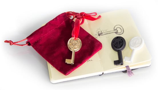 These days railroad keys aren’t made in brass, but historically they were made in that material, and I figured it would be perfect to create this key. Polished brass is still a trial material at Shapeways, but considering how awesome this key looks, you’d probably never know. With a red velvet ribbon and pouch, the key is ready for gifting. Though the key does work on trains, most likely it will only be used for decorative purposes so it doesn’t get lost.