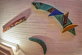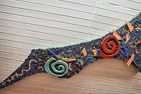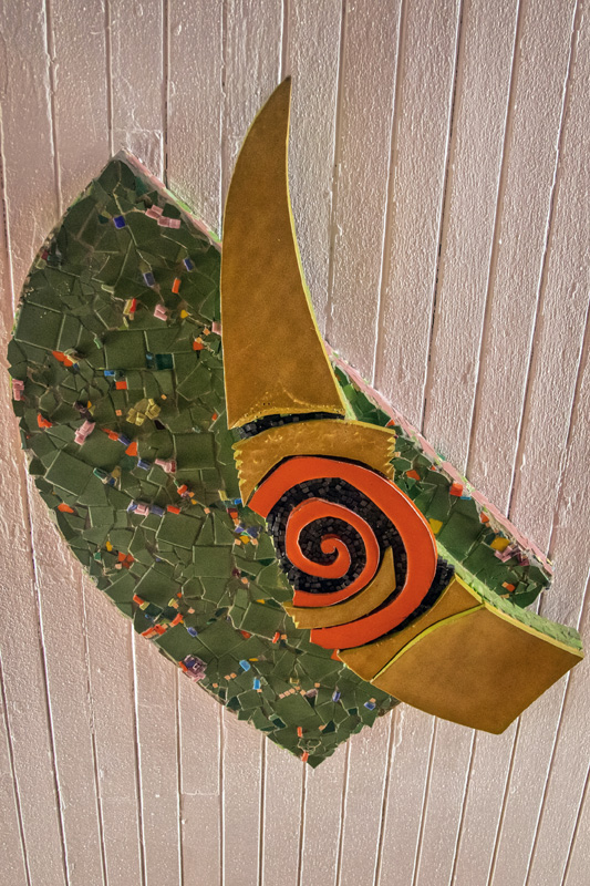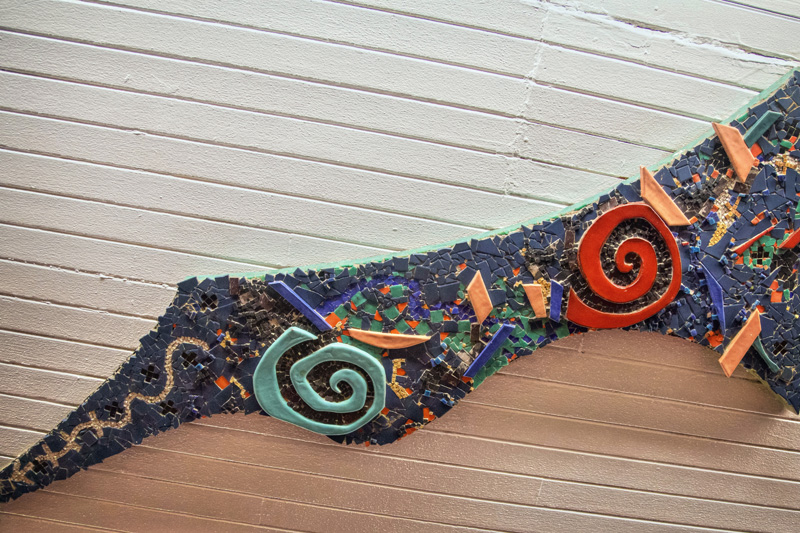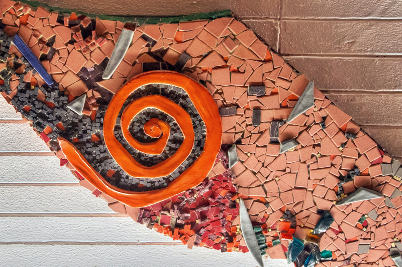 Detail shots of the sgraffito panel on Mount Vernon West station.