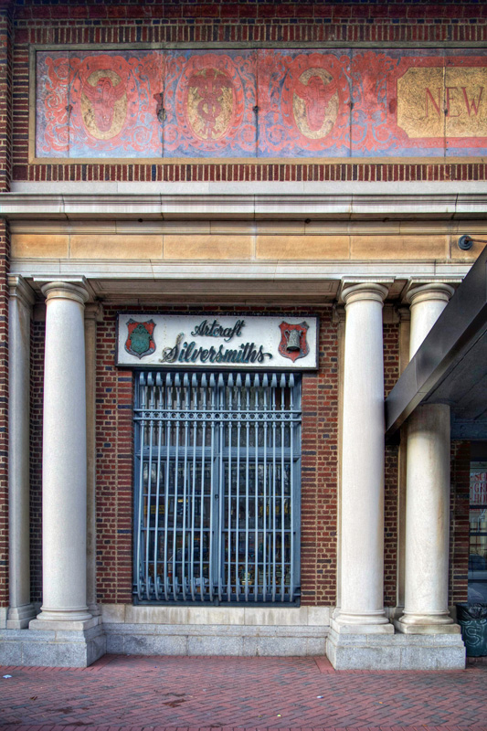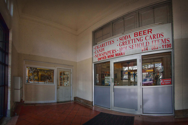 An array of businesses have found homes in the old station over the years, from a silversmith to a pharmacy, a photography shop, and even a karate studio in the building’s upper floor. The north wing that was demolished and rebuilt has been various banks over the years – in the ’80s the Bank of New York, today Chase. Original details on the inside are very few, but some design work can be found on the walls of an upper hallway.