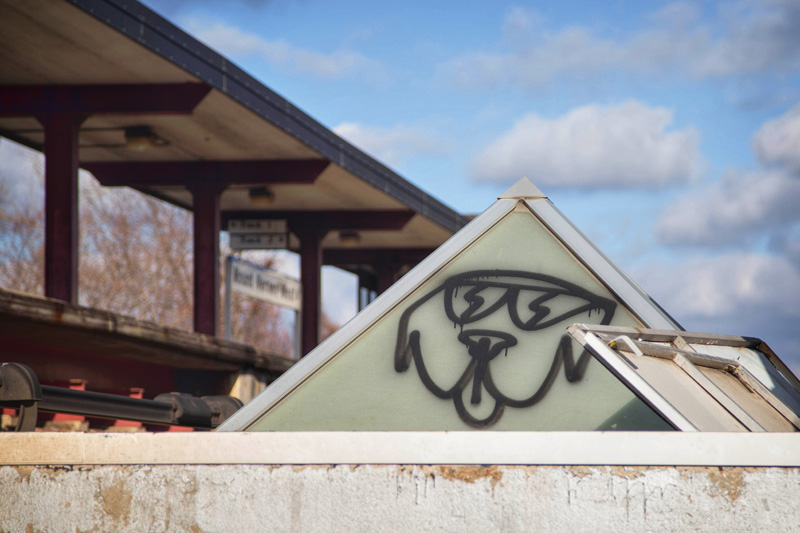 The current train station, which consists of the tunnels under the tracks, is hardly noteworthy except for the old “M Central” signage and the Arts for Transit piece by Martha Jackson-Jarvis. Upstairs on the platform level one can see the back of the once great train station, now covered in graffiti. It is mildly amusing to note that the words sgraffito – the art found on the station, and graffiti – the spray marks tagged on the historical building both share the same origins. I generally appreciate the graffiti along rail lines, but it is a shame to see it mar a nearly hundred year old station… it seems to be the final, sad outcome of a once proud station, reflecting the downfall of a once great railroad, now long gone.