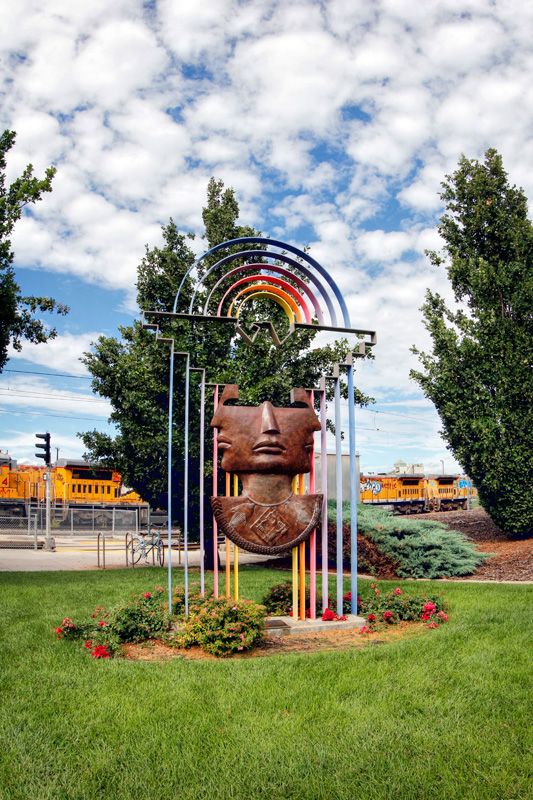 In terms of Art-n-Transit, you’ll see Emanuel Martinez’s sculpture Mestizaje, also located at the 10th and Osage station. My personal favorite is the untitled mural at Decatur-Federal station by street artist Jolt. With assistants Omni and East, the Guerilla Garden project was completed in 2012. Although it isn’t the typical medium you’d see in a transit art program, graffiti and railroads have had a long, intertwined history, and it is undeniable that the piece brightens up the dull underpass in which it is located.