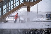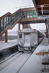As you’ll see from the photos below, running trains yesterday was not easy. Many people like to debate over catenary versus third rail methods of powering electric trains – each has its merits, but yesterday demonstrated one of the downsides to third rail. Excessive amounts of snow up to and covering the third rail makes it difficult, if not impossible, to operate electric trains. But if 100 car pileups could attest, the roads weren’t that great yesterday and today either.