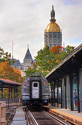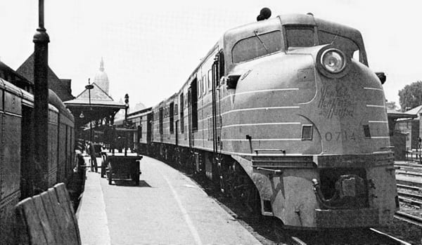 A northbound train at Hartford in the late 1940s. Note the Capitol visible in the background. [image source]
