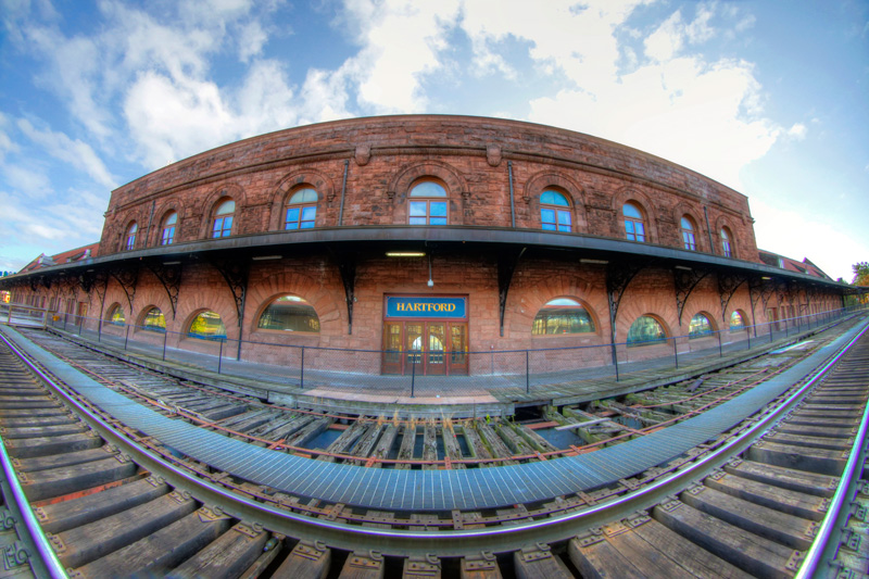 These days, Hartford is not the hub it once was. No longer are the days where trains were plenty, and it has been many decades since quasi-celebrity citizens like Mark Twain and Harriet Beecher Stowe called Hartford home. About twelve trains stop daily at the station, the station is along Amtrak’s Vermonter, and Northeast Regional routes, and is a station stop on the New Haven – Springfield shuttle. Technically trains don’t run from the historical building – Amtrak occupies out of an addition underneath the viaduct carrying the railroad over the city, along with bus operators and a few fast food kiosks. One can, however, enter the addition from the historical depot.