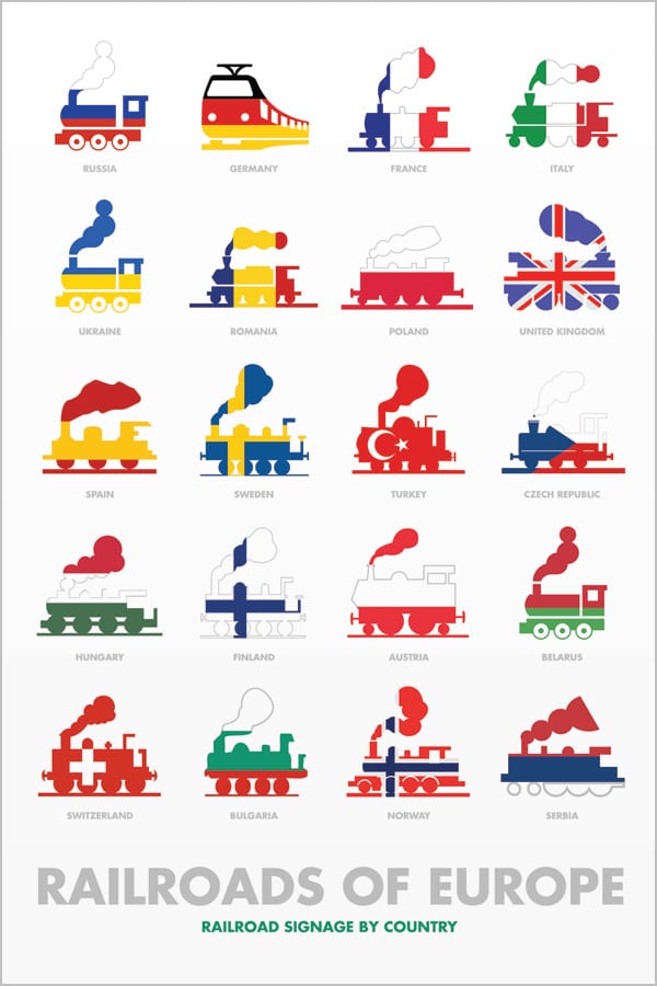 And just for fun, I made one more poster which shows the logos of the primary railroads in each country…