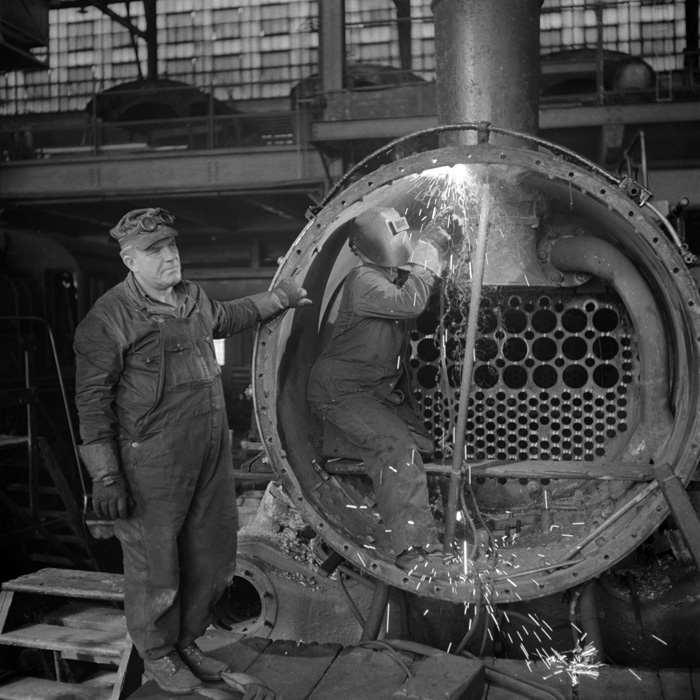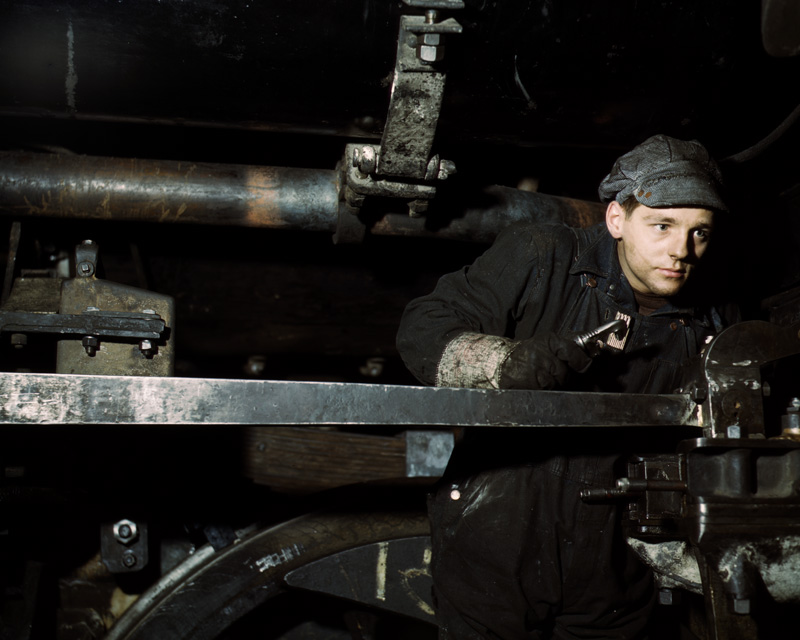 I’ve always enjoyed Delano’s work very much. His portraits of the wartime mothers working in locomotive servicing always struck me as classic images of the period. I also like his similar work in the airplane manufacturing industry.