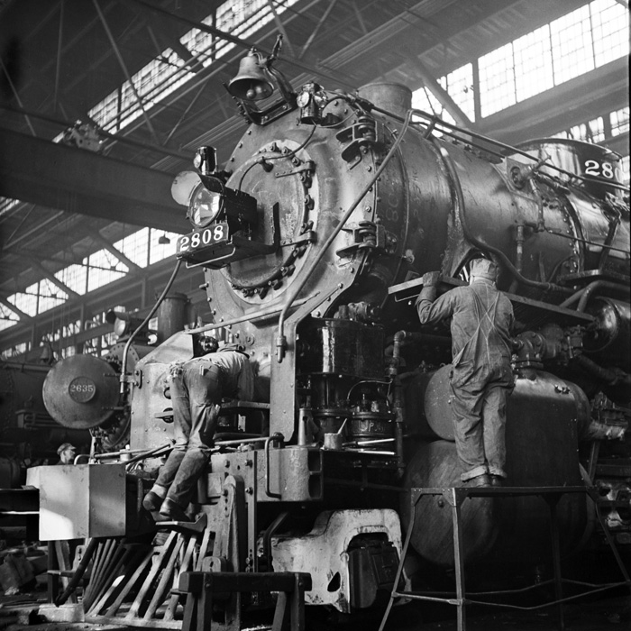 Below you’ll find a selection of some of my favorite Chicago-area Jack Delano railroad photographs, several of which were in the exhibit. Thousands of Delano’s photographs are available online to view at the Library of Congress, railroad and otherwise.