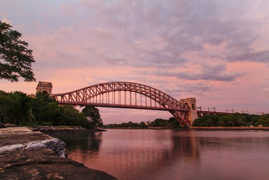 A pink sky over Amtrak’s Hell Gate Bridge.